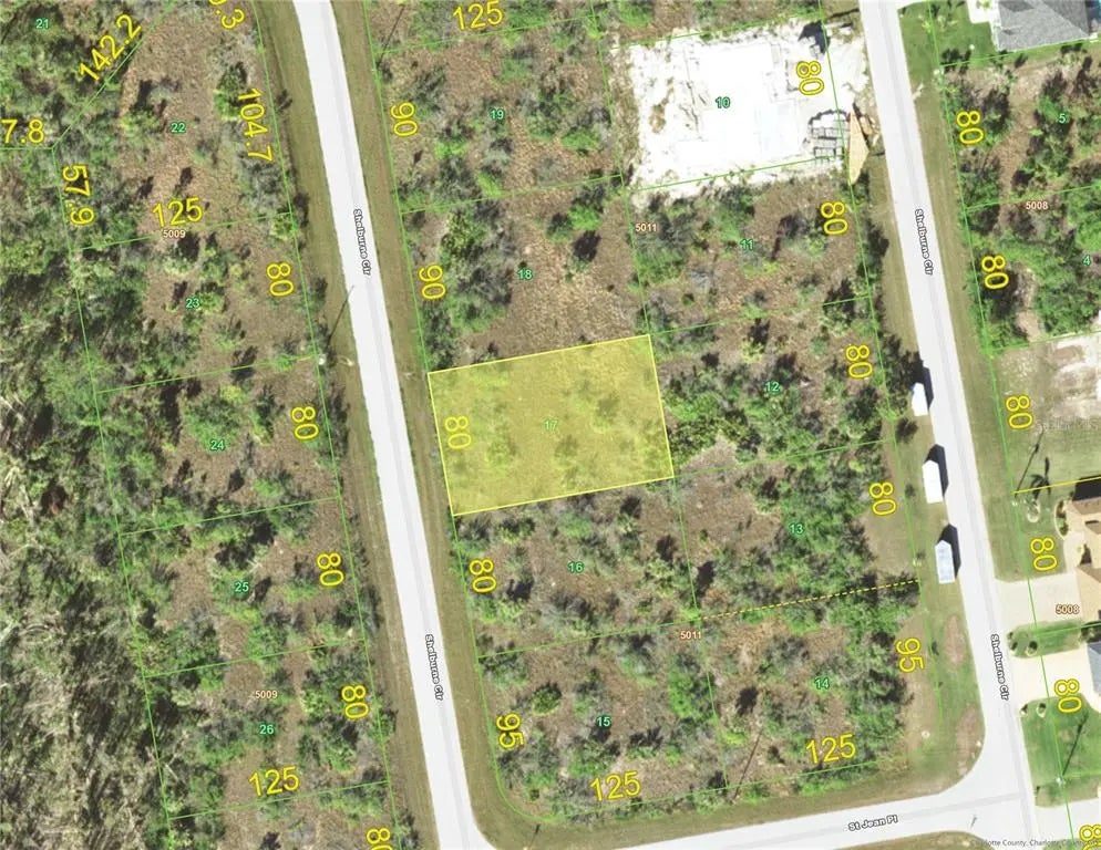 Future home site – this 80 X 125 building lot is located in Section 94 of South Gulf Cove, a deed restricted waterfront community equipped with city water and sewer! Section 94 has a mandatory HOA - Waterview Property Owner’s Association. This property is on a non-though street, a nice quiet part of South Gulf Cove. North of this property off of St. Paul Dr., you will find - St. Paul Linear Park’s nature trail; where you can walk and fish along the Interceptor Lagoon. South Gulf Cove also has a voluntary membership for the Home Owners Association, where you will find - South Gulf Cove Park – located under 5 southwest from this property, where you can enjoy: Boat Ramp, Fishing, BBQ Grills, Picnic Shelter and more. By car this lot is located approximately 14 miles (northwest) to Englewood beaches and 17 miles (southwest) to the historic Boca Grande Lighthouse at southern tip of Gasparilla Island. You will also find a number of Golf Courses within 5-10 miles. This is a great private location, close to HWY 771, just south of 776 where Charlotte Sports Park is – Home of the Tampa Bay Rays Spring Training! Invest or build your new home and enjoy all the delights of Southwest Florida’s lifestyle!