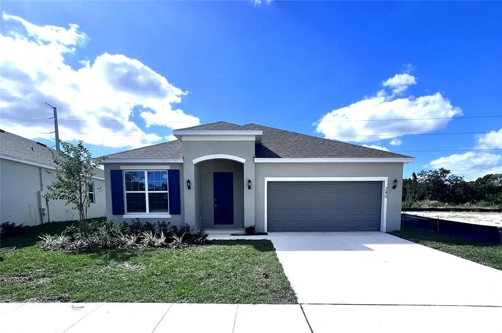 Under Construction. Welcome to this stunning Dream Finders Poinciana floorplan, located in the highly sought-after community of Willowbrook near a beautiful golf course in Winter Haven, FL. This spacious 4-bedroom, 3-bath home offers 2,110 square feet of living space, and providing excellent curb appeal in it's elevation. Inside, you'll find gorgeous white cabinets complemented by sleek quartz countertops in the kitchen, creating a modern, bright atmosphere. Tile flooring runs throughout the wet and common areas, offering durability and easy maintenance. The open layout is perfect for family gatherings and entertaining guests.