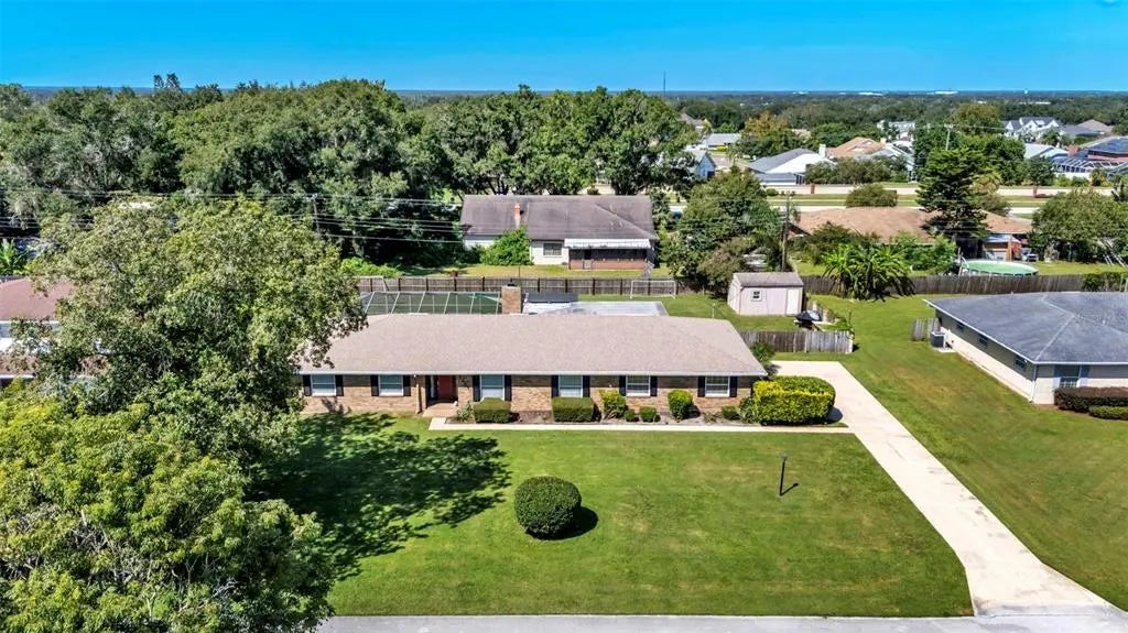 One or more photo(s) has been virtually staged. This beautiful 4-bedroom pool home with a bonus room sits on nearly half an acre in the heart of South Lakeland—without the restrictions of an HOA. From the moment you arrive, you’ll notice its timeless ranch-style design, accented with brick across the front and sides, plus a convenient side-entry garage with an oversized driveway for plenty of parking. Inside, the home is designed for both comfort and entertaining. The spacious living room is anchored by a charming wood-burning fireplace, while the oversized master suite boasts a private bath and a massive 12x10 walk-in closet complete with a built-in floor safe. Tile flooring runs throughout the main areas, with carpet in the bedrooms for added comfort. The large indoor laundry room is just off the kitchen and provides easy access to the garage. A versatile bonus room makes the perfect office, den, or additional family space. Step outside and you’ll find a huge screened lanai with a solar-heated pool—ideal for year-round gatherings with family and friends. The backyard is fully fenced, offering both privacy and space for pets or play, and includes a storage shed for tools, hobbies, or equipment. With its rare combination of space, character, and location, this South Lakeland pool home is a true find—one you won’t want to miss! All sizes and information is believed to be accurate but should be verified by buyer and or buyers agent.