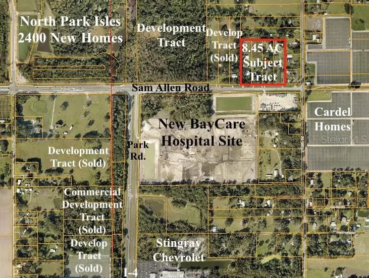 One of the last development tracts available. This property consists of 5 tracts totaling 11.3± acres along E Sam Allen Rd across from the new BayCare Hospital site . With 600'± of road frontage on Sam Allen and frontage along N Wilder Rd providing access on two different roads the property is right in the middle of the new growth area in northeast Plant City and between the North Park Isles (2,200 homes) and Varrea (2,400 homes) brings opportunity for development. The property is being sold for development potential and will need to be annexed into the City Limits of Plant City and each parcel currently has occupied homes.
