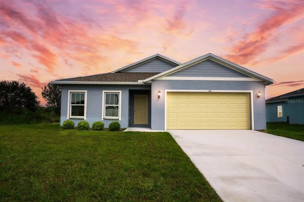 ***NEW CONSTRUCTION, NO WAIT, MOVE IN READY!*** Elevate your lifestyle with the opulence of the Sanibel floorplan presented by Carpenter Homes—a masterpiece within the Florida Living Series, certified by the Florida Green Building Coalition (FGBC). This home features 4 bedrooms and 2 full bathrooms. This dream home is designed and built to immerse you in luxury! As you enter, a beautiful kitchen welcomes you, with an expansive, oversized bar that seamlessly flows into the living and dining area. The finesse of soft-close, Shaker Stained Basalt 30" cabinets and upgraded Crema Pearl granite countertops add a functional touch of luxury to the kitchen. Kitchen upgrades include a Moen Integra chrome kitchen faucet, garbage disposal, and sleek stainless steel energy efficient appliances. This home exudes sophistication with a vaulted ceiling that unveils a spacious lanai, creating an indoor-outdoor haven. Additionally, Carpenter Homes provides an upgraded lighting package including Kemal Bronze pendants over the kitchen bar, and Oslo brushed nickel vanity fixtures in both bathrooms, accenting the overall lighting design. Brushed nickel finish ceiling fans in each bedroom, as well as the great room, helps to circulate air flow and keep you cool in the Florida weather. Complimenting the expansive living area is Magnisi 18x18” beige ceramic tile flooring. The Owner's suite is a sanctuary of indulgence, showcasing dual sinks, impeccably tiled Magnisi 8x12” white walls in the shower, and a generously sized walk-in closet. The home boasts Magnisi 8x12” white upgraded tiled walls in in the second bath/shower, a Crema Pearl granite vanity top, and Moen Chateau chrome faucets and shower/tub trim kits. The ampleness of this home continues with a utility room, and additions such as energy-efficient R-4.1 insulation on concrete exterior walls, Taexx tubes for pest control, and fabric hurricane shutters for every window. The Florida friendly landscaped yard is complemented by an irrigation system with a rain sensor to help you maximize your efficiency. The expansive 2-car garage, complete with garage door opener and two remotes, not only provides ample space for your everyday needs but also ensures the utmost convenience and versatility for all your storage and parking requirements. Step into a world where extravagance meets eco-conscious living—your forever home awaits, a testament to timeless elegance and modern sustainability! Available to view anytime.